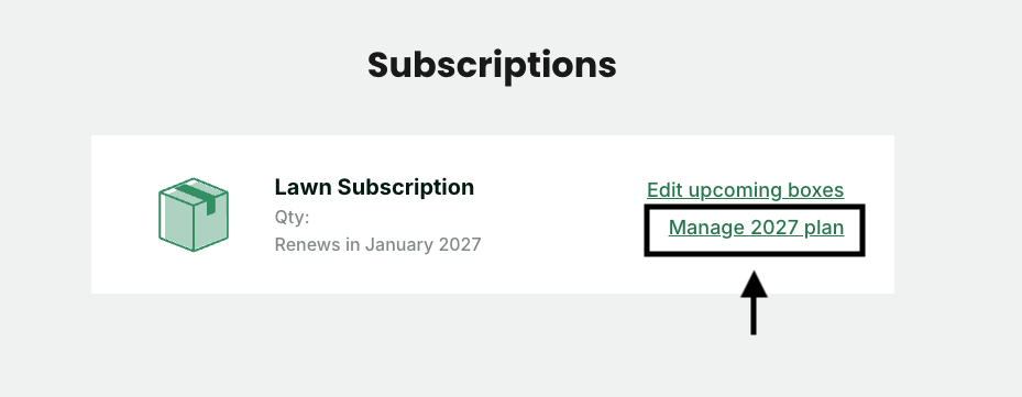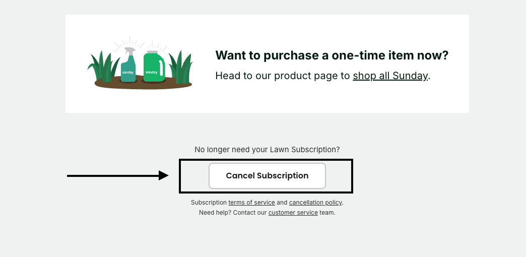 You may cancel a Sunday Custom Lawn Plan at any time. If your subscription is canceled before a box is marked as “Order Committed,” the cost of that box and any future shipments will be refunded, if applicable.
