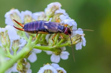 Damage: Earwigs may damage or feed on some vegetable plants or leaves or may dig holes in flower blossoms. Damage is often not severe—these are more of a fear-inducing or nuisance pest in the garden (and home! But don’t worry, earwig forceps might look scary, but they aren’t strong enough to pinch humans!).