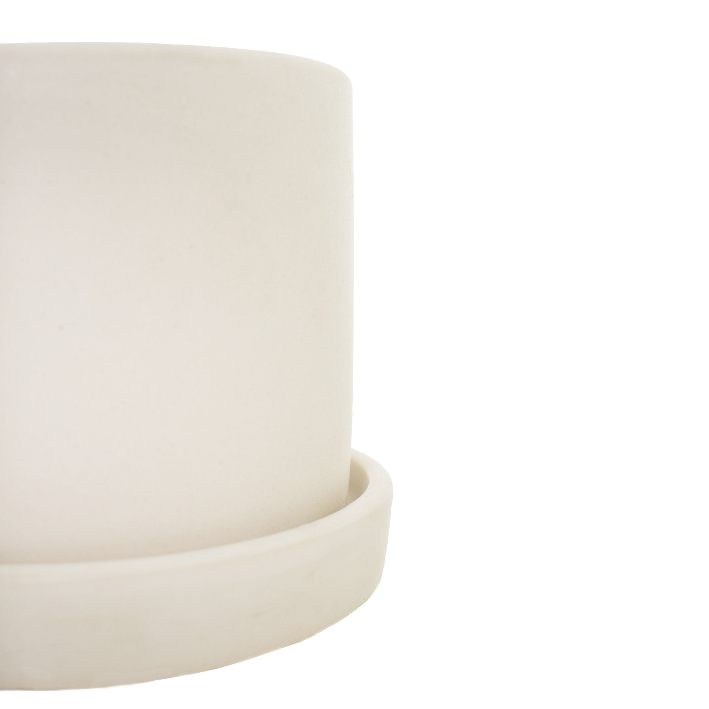 The 5” Cream Clay Planter features a semi-matte finish, ideal for stylish indoor and outdoor use, and includes a matching saucer.