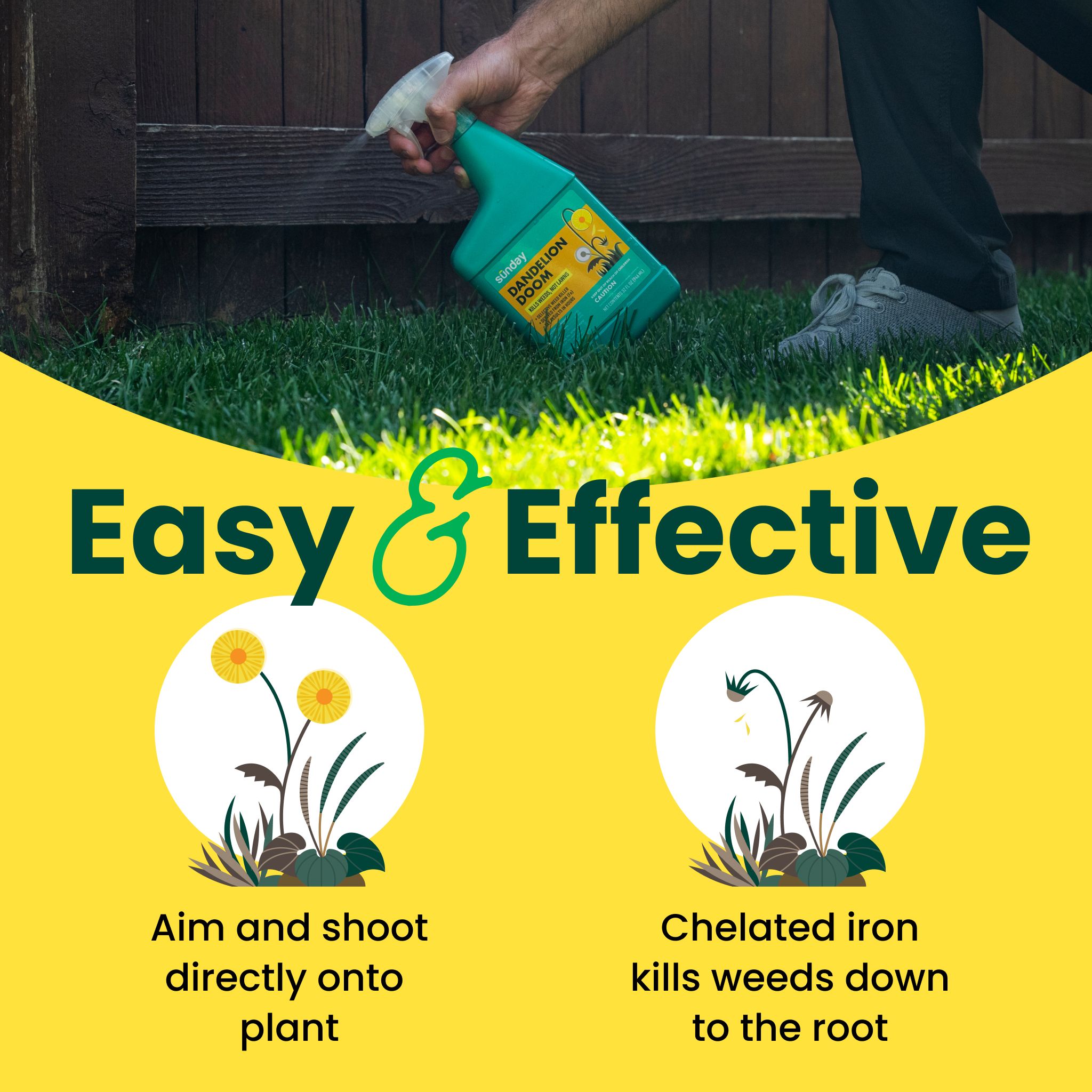 Dandelion Doom Spot Treatment delivers our powerful iron-based weed control in a convenient spray bottle format - no mixing required. Perfect for targeting individual weeds or small problem areas throughout your lawn. The selective formula kills broadleaf weeds like dandelions and clover while leaving your grass unharmed. Its iron-rich formula works quickly, showing results within hours, and kills weeds down to the root for lasting control.