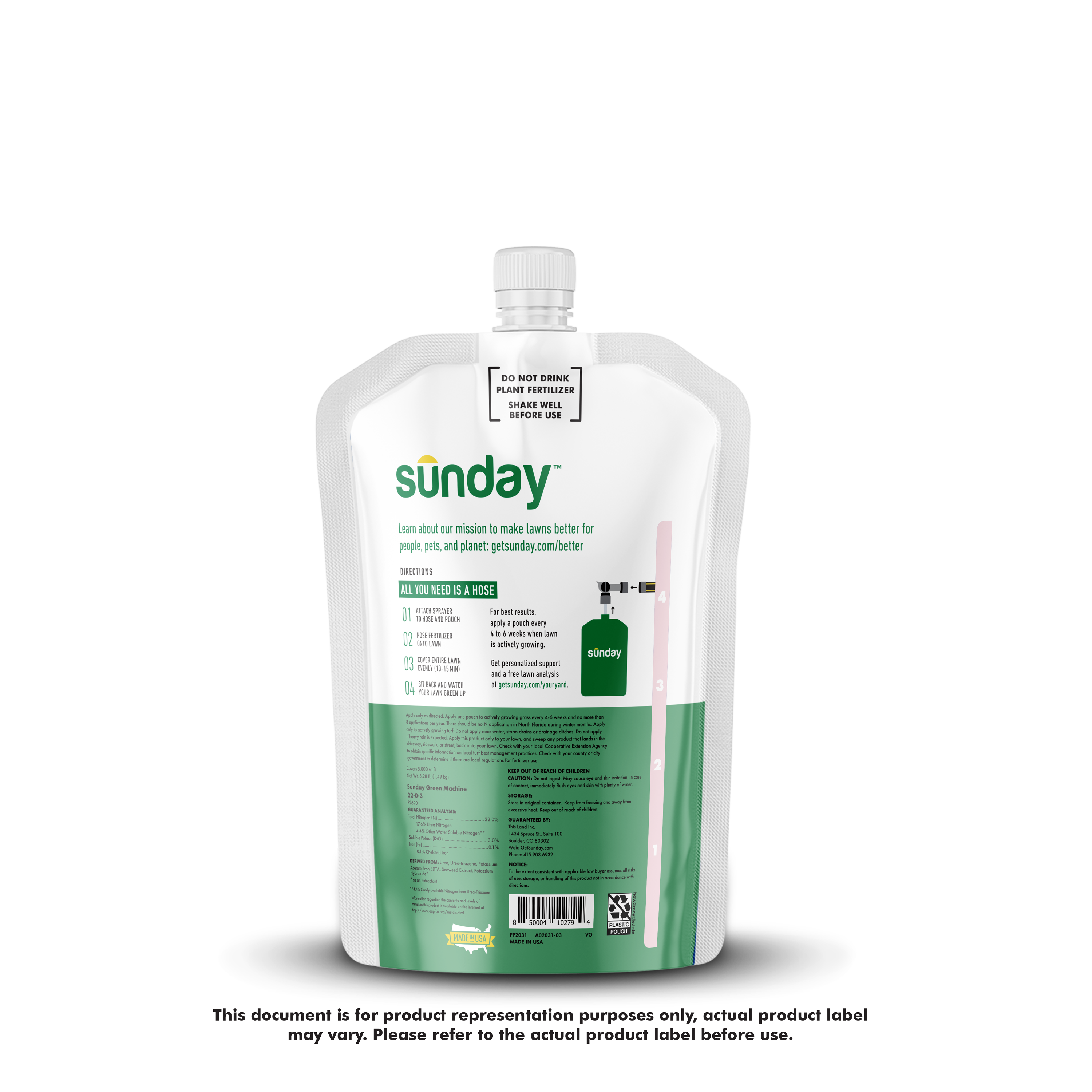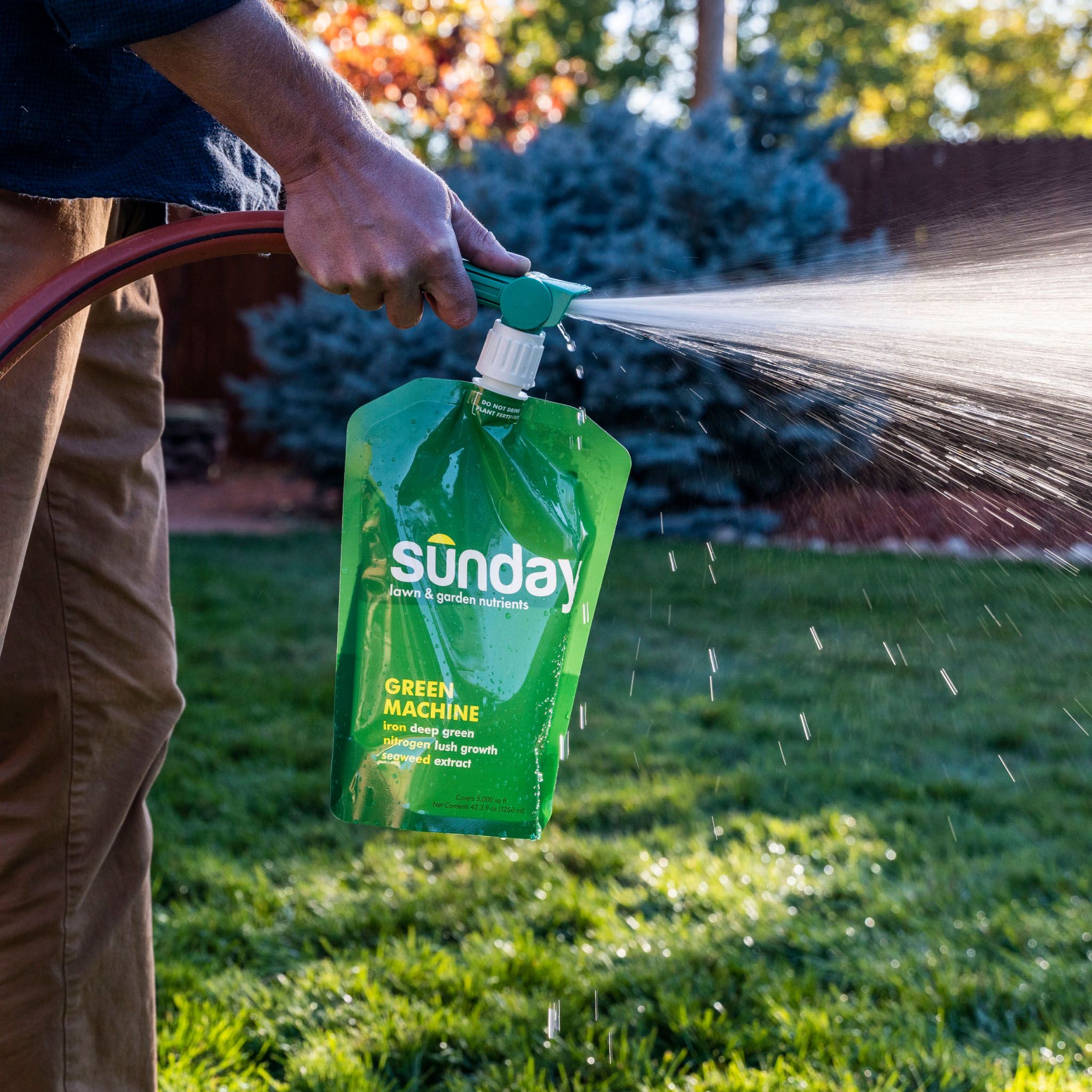- Includes liquid fertilizer in flexible reduced plastic packaging and a custom-engineered universal hose-end sprayer