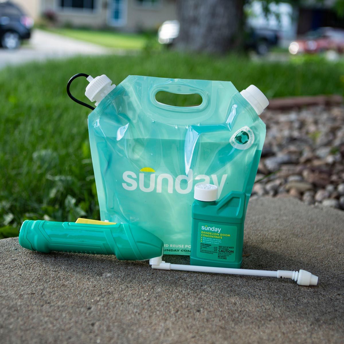 One Sunday Herbicide Pouch with Wand Sprayer: For herbicide mixing and precise application